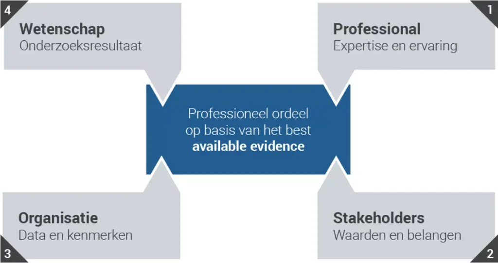 Nos tests et nos outils sont toujours basés sur la recherche scientifique. Nous gardons le pouls en adoptant une approche fondée sur les preuves. À cette fin, nous disposons de notre propre groupe de recherche qui, sur la base d’analyses scientifiques, émet des jugements professionnels sur la qualité des tests, fournit des conseils sur la mesure des compétences pertinentes pour l’emploi ou mène des études sur des questions de recherche spécifiques pour les clients. Dans leurs actions, ils appliquent le modèle CEBMa (Center for Evidence-Based Management) dans la pratique :